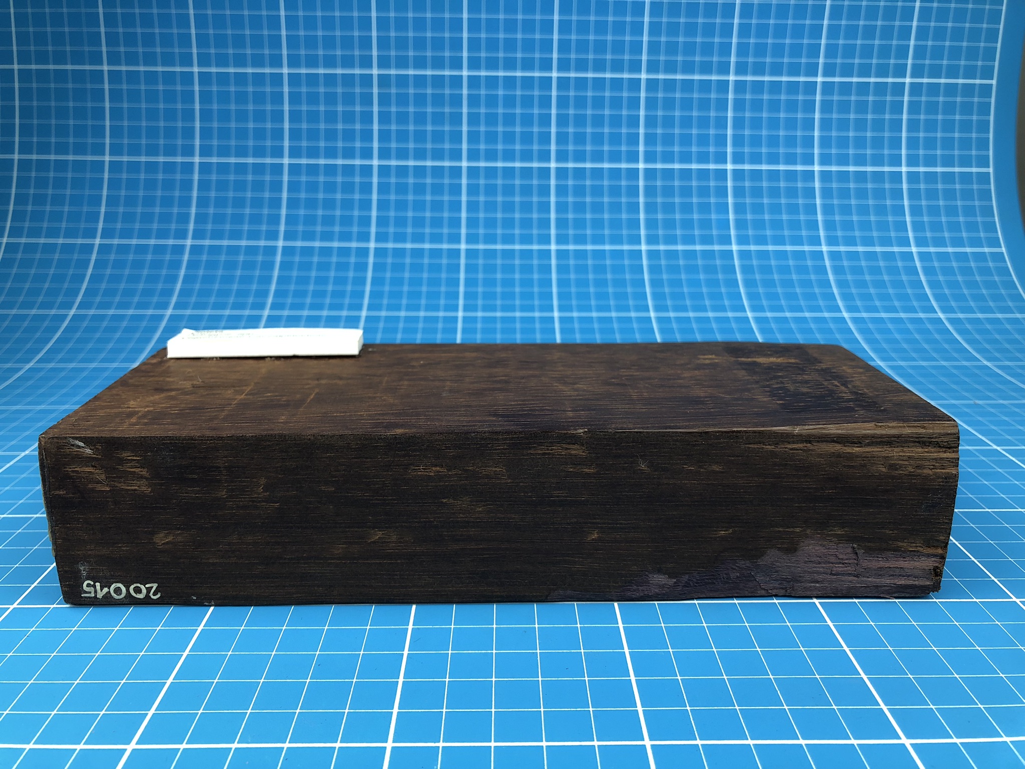 Peça de madeira de Jacareúba em formato de bloco medindo 22,5cm x 10cm x 5,5cm.